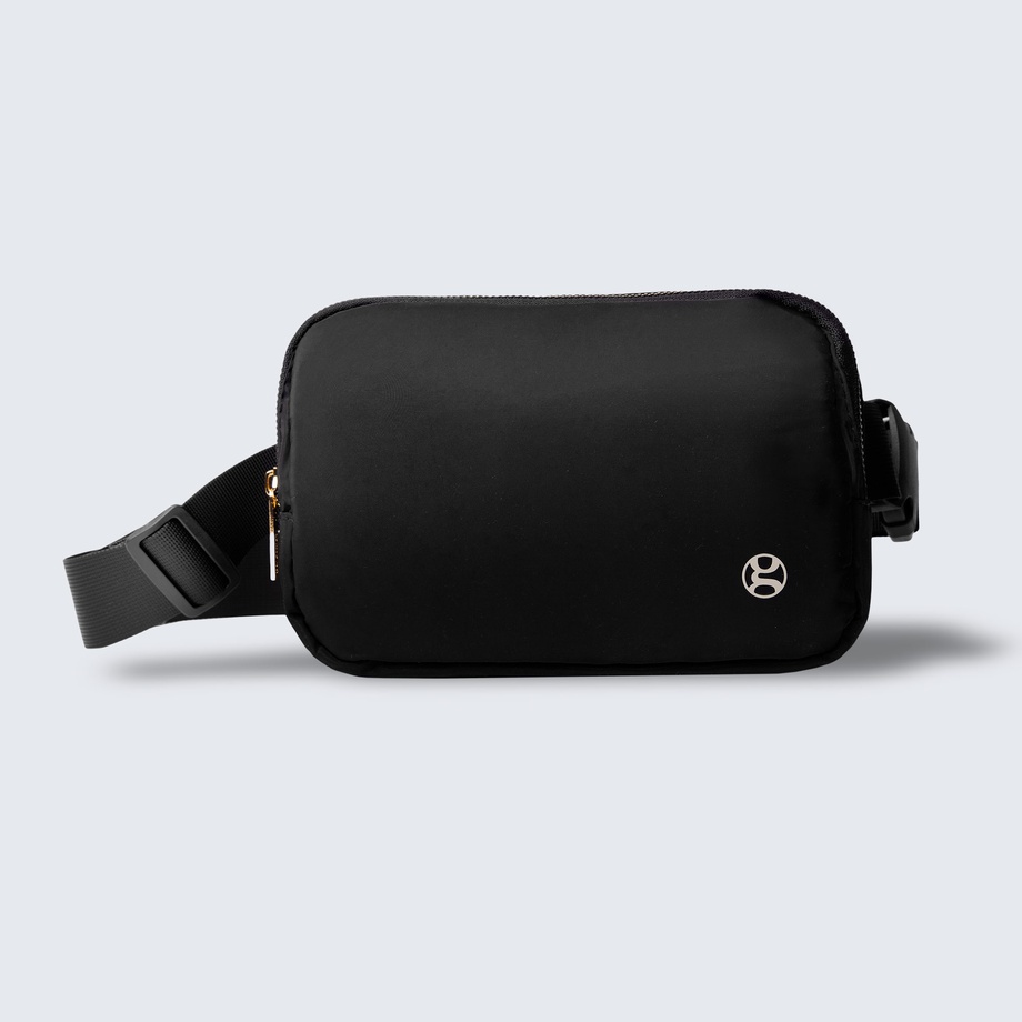 Our belt bag has a perfectly simple, sleek design & neutral black-and-gold colourway that goes with any style of outfit. Enjoy the convenience of keeping small items organized in the slim mesh pockets inside the main compartment, or in the passport-perfect pocket on the outside. Plus, the adjustable strap gives you the option to wear it around your waist or across your body, and its 1L capacity is plenty for all your essentials—so you can have everything on hand, while keeping your hands free!