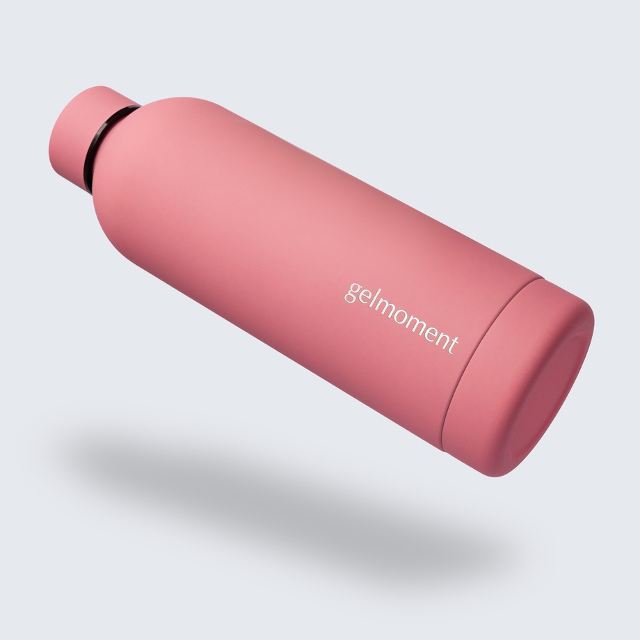 An additional plus of our water bottles is their distinct design. They’re available in two colours—matte pink & matte black—both tastefully branded with the gelmoment logo along the side & on the cap. The matte finish is super soft, and adds such a gorgeous, unique touch to this indispensable product.
